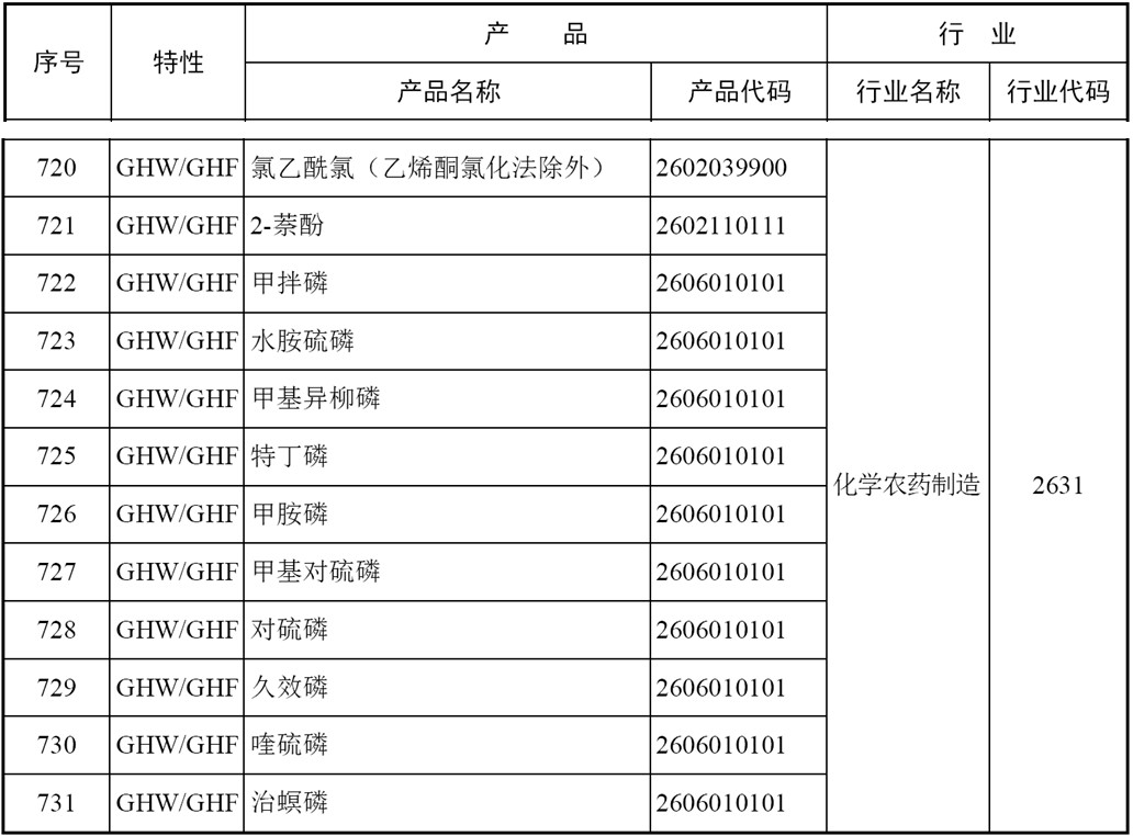 環(huán)境保護綜合名錄(2021年版) 中有關(guān)農(nóng)藥部分: