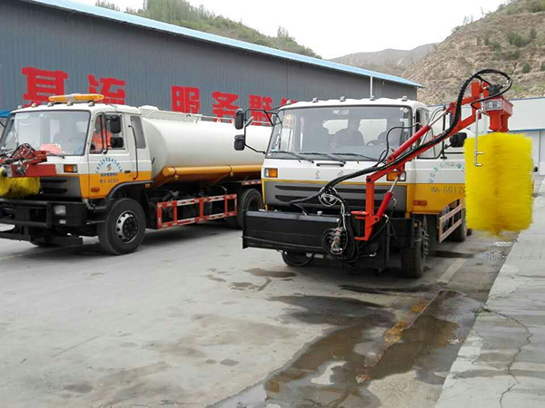 4、調(diào)整升降缸,伸縮臂缸,然后使刷滾擺動更左端,使清洗位置恰當,開始進行工作。