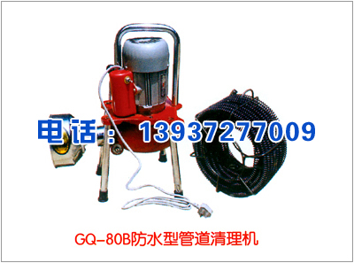 GQ-80B防水型,是我公司新設(shè)計(jì)的輕巧,適用于各種室內(nèi)管道系統(tǒng),備有多種刀具,并能按裝滾捅,用于疏通小直徑帶有反水彎的管道,適用于直徑Φ20-280mm長度30m的各種管道。