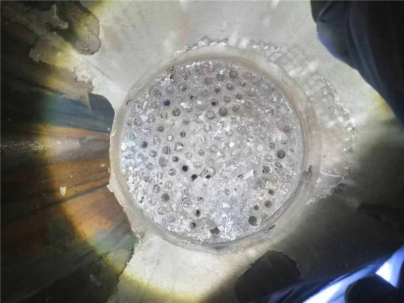 2022年8月12日河南都市機(jī)械設(shè)備有限公司馮經(jīng)理坐鎮(zhèn)指揮,技術(shù)員喬俊陽、都紅植積極配合,與新疆哈密市,新疆湖晟新材料科技有限公司張總,針對(duì)兩臺(tái)熱水缶,(廢水處理蒸發(fā)器)多年沒有解決了的結(jié)垢堅(jiān)硬堵死的管子內(nèi)徑38毫米長度6米難題,使用特別加長的加粗軟軸,進(jìn)行一步到位的疏通清理,過去奔著報(bào)廢處理的設(shè)備又重新煥發(fā)生機(jī),即節(jié)約資金損耗又減少了工作時(shí)間,大大的為企業(yè)提高了效益,深受化工廠化肥廠鋼廠電廠制氧廠水泥廠糠醛廠青睞和歡迎!
