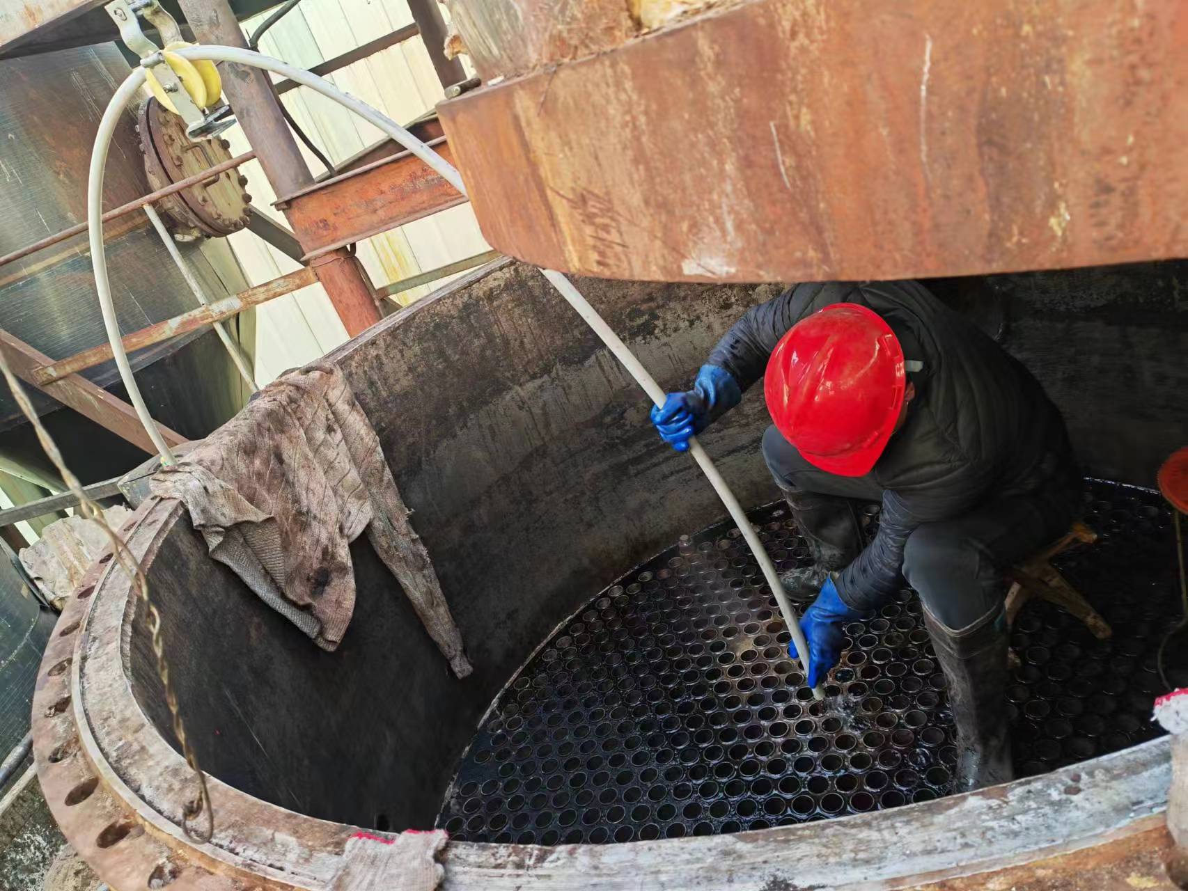 2024年1月22日在河北省石家莊市無極縣順達化工有限責任公司王云龍,王彥福等幾位老板的共同探討,共同努力和指導下,與我方:河南都市機械設備有限公司技術(shù)專員喬俊陽,科技開發(fā)領(lǐng)導人祝金善緊密配合,共同研究探討清洗使用GQ~600型智能清洗機的使用方法,如何鉆的更快更方便好用,如何節(jié)省時間,提高效益,做了深刻的研究,針對一臺600平方的廢水蒸發(fā)器,1100根管子,管子內(nèi)徑40mmX長度5m.上面基本上沒有堵死,下面80%徹底堵死的管道,使用直徑37mmX12mm六刃代尖YC8合金鋼鉆頭進行了疏通清洗,從早上8點半開始,中午休息1個小時,到下午4點22分徹底疏通清洗完畢。只用了一根軟軸,一個鉆頭,鉆頭和軟軸基本上沒有什么磨損,感覺只要機器放穩(wěn),軟軸放順勁,不缺水不缺電還是很好用的,歡迎各位業(yè)內(nèi)人士,多多關(guān)注點贊評論收藏分享指導合作!