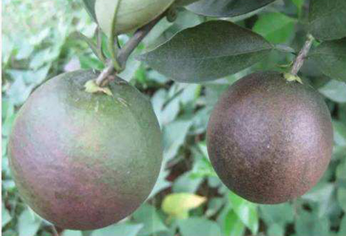 成螨和若螨群集在葉面、果實(shí)和枝梢上,刺破表皮細(xì)胞吸食營(yíng)養(yǎng)液。葉片和果實(shí)受害后油胞被破壞,內(nèi)含芳香油溢出,經(jīng)氧化而呈黑褐色,果成黑皮果,葉成銹葉。由于黑皮果皮粗糙皸裂,無(wú)正常果色,大大降低果實(shí)的外觀和品質(zhì),失去商品價(jià)值。