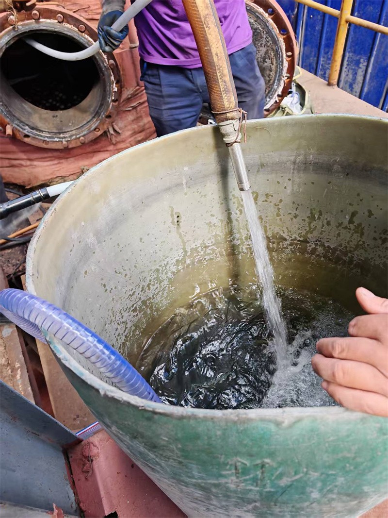 2025年6月6日、迎著37℃高溫,晴空萬里,找不到?jīng)隹斓牡胤?,河南省安陽縣永和鎮(zhèn)北街村糠醛廠,河南省多溢利生物科技有限公司總經(jīng)理葉亦林委派彭美燕生產(chǎn)廠長總工程師與河南都市機械設(shè)備有限公司喬俊陽主任,王永勝技術(shù)員,聯(lián)合研制開發(fā)了廢水蒸發(fā)器多管徑式內(nèi)徑28-32-34mm廢水蒸發(fā)器鍋爐清洗機鍋爐管道疏通機通管機,管道管子直徑38-36-32mmX5m,經(jīng)過多次現(xiàn)場試驗,使用直徑20mmX13mmX10m軟軸及直徑25mmX16mmX10m+5米軟軸,配直徑25-26-30-31-32-33合金鋼鉆頭,不斷的調(diào)換軟軸及鉆頭鉆的快,簡單方便,輕松的解決了管道內(nèi)結(jié)垢堅硬,堵死管道無法解決難題!