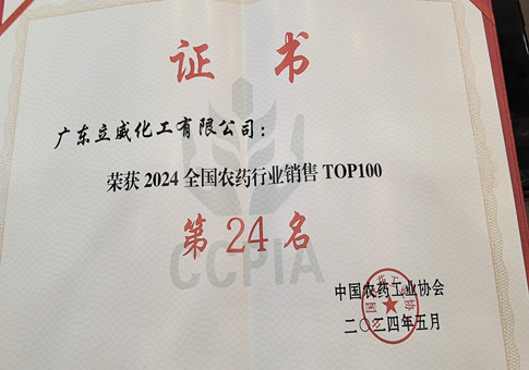 2024年5月21日,中國農藥工業(yè)協(xié)會發(fā)布了2024全國農藥行業(yè)銷售TOP100名單。廣東立威化工有限公司,以31.89億元的銷售額位居全國排名第24名。