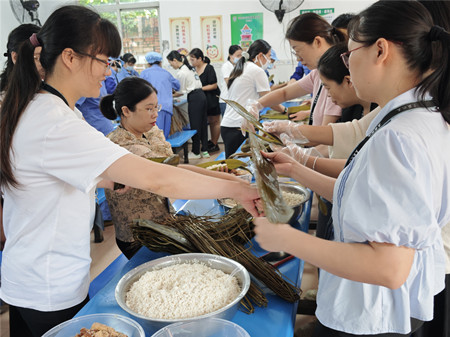 隨后,進(jìn)入到DIY包粽子環(huán)節(jié)。一片綠葉,一縷清香,一根細(xì)繩,包裹著華夏傳承千年的味道,更凝聚著大家美好的愿望與真摯的祝福。